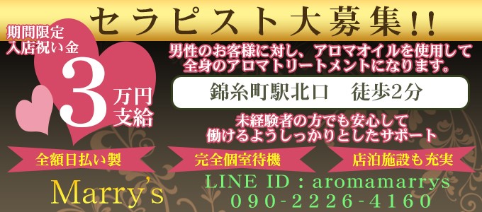 錦糸町Marry’s(マリーズ) ★入店祝い金3万円支給!! 即日働く事が可能です。 LINE、TEL、MAIL、どとらからも受け付けておりますので、気軽にお問い合わせ下さい。
