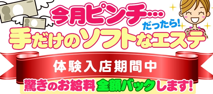 お金は必要だけど風俗サービスはちょっと・・・当店はハンドマッサージだけだから簡単で優しいサービス内容♪入店祝い金:15万円~20万円支給!お家手当て:家賃の40%を支給!携帯代手当て:毎月支給!聞きたいこと・気になること・不安なこと・悩みなど遠慮せずにお気軽にご質問ください!
