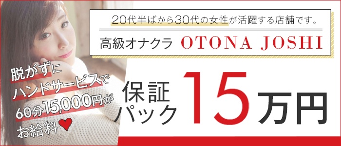 20代半ばから30代の女性が活躍する高級オナクラ店! 今だけ限定!3時間体験入店 5万円保証★ さらに「入店祝い金10万円」を贈呈。 脱がずにハンドサービスで60分15,000円をお約束♪ 1日6時間以上の出勤で「3万5千円」の日給を永続保証中! 当店では大人の女性の魅力がありながら、かわいらしさを持ち合わせている女性を募集しています。 ヘルス店のようなハードサービスを一切せずに、稼ぐことが可能!! ソフトサービス店だからこそ『安心安全』にお仕事ができますよ。 見学や体験は毎日24時間