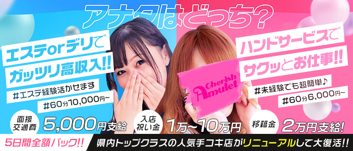 新潟・古町通手コキCherish Amulet|風俗じゃない日払い高収入のお仕事で稼ごう!副業やアルバイトに最適です!