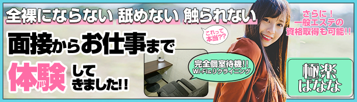 極楽ばなな京都店は、「笑顔で仕事に一生懸命」な女性を募集しています!! 「完全個室待機」「エステ資格が取得できる」マッサージ店!キス・受け身・全裸一切ありません♪ 当店は「心と体を癒す極楽デトックス」のお店です。 体の疲れも性的な欲望も、どちらも吹き飛ばしたいというお客様に受け身の快感を楽しんで頂いております。 お客様は、お身体を女性に預けて頂き、ゆっくりと気持ちの良いマッサージを密着しながら行う内容です。 難しく思えるかもしれませんが、当店では風俗エステの経験、風俗の経験は必要ありません。 専任の女性講師から丁寧に教えてもらえますので、不安のままお仕事に行くことはありませんので、ご安心ください!(^^) ※一般エステ講師を招いての「エステ講習」を行っていますので、エステ技術不安な方もしっかり学ぶことができます!講習受講していただき試験に合格すると一般のエステで使える「ディプロマ証書」を発行致します。 ●【お客様層】 ・マッサージが好きな方 ・本格的な回春性感マッサージを楽しみたい方 ・他店利用時に、広告のサービス内容をしてもらえずガッカリした方 ・たまにはゆっくりと受け身を楽しみたい方 ・心と身体の疲れを一気に取りたい方 などのお客様に大変喜んで頂き、ご利用頂いております。 ●【お給料】 お給料も「60分8000円~スタート給保証」ですので、ソフトサービスで性病リスクなくヘルス並みのお給料を稼ぐことができます。 出勤が少なくても、指名が少なくてもお給料が上がる独自システムで、「60分8000円~15000円」まで昇給していきます! ●【待遇】 面接交通費支給 全額日払い 自由出勤 完全個室待機 一般エステ資格取得可能 即日勤務可能 貸衣装あり アリバイ会社完備 終電後送りあり 掛け持ちOK 未経験者大歓迎 初心者講習あり(女性講師) 寮完備 待機方法自由 昇給システムあり 完全分煙 wi-fi完備 ノルマ・罰金なし 性病リスクなし 専用ロッカーあり リクライニングチェアー完備 初めての方でしたら問い合わせをすることは、とても勇気のいることだと思います。 ただ少しでも、「やってみたいな」「気になるな」と思われましたら、是非お気軽にお問い合わせ下さい。 説明だけ聞きたい、というのでも大歓迎です。ご連絡お待ちしておりますm(__)m
