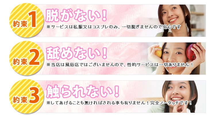 お仕事内容は一人エッチを見てあげること。可能ならハンドサービスまであります。その他、男性の興奮を高めてあげるための工夫をこらしたオプション(別途有料のサービス)をご用意。「できる/できない」をご自分で選んで決めていただくことが可能です。できないことは決して無理させません。これはグループのルールです。