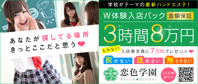 楽しくて稼げるキラキラな『学園生活』をスタートしてください♪とっても可愛い店舗指定の制服を着て、ソフトサービスな高収入アルバイト!はじめての女の子でも大丈夫!ハードな内容は一切無いので、本当に普通の女の子がすぐにお仕事スタートできちゃいます!しかも保証制度が用意されていますので、お仕事に出ても稼ぎがゼロ…なんてことは絶対ありえません!!