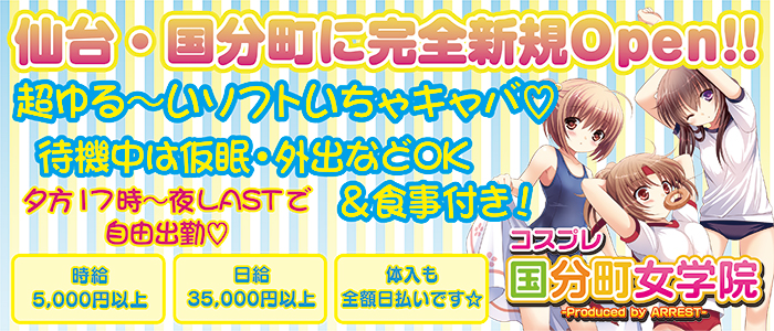 <国分町TOPクラスのお給料>時給5,000円以上、日給35,000円以上!※もちろん体験入店も全額日払い制☆夕方17時~夜LASTまでお好きな時間に働けます♪超自由なお店ですので、出勤したくなったら連絡でもOK♡完全個室待機、待機中は仮眠・外出など自由、うれしい食事付き♪